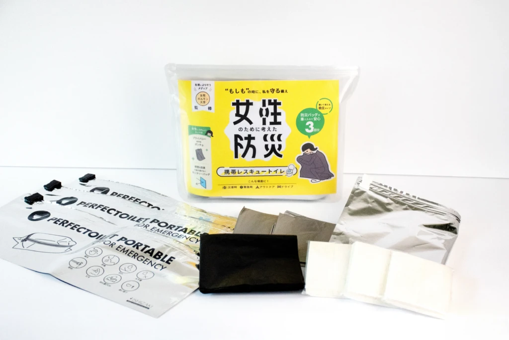 さらにこのコーナーに、私たち女性ホルモン大学が監修した「女性のための防災 携帯レスキュートイレ」も展示されます!